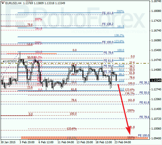 After rebounding from a correctional retracement 78.6%, the price started falling again. The target is still at the group of lower fibo-levels. In the nearest future, the market is expected to form a local correction and then continue moving downwards.