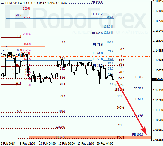 After rebounding from the upper fibo-levels, Eurodollar is trying to resume falling. The closest target for bears is the group of fibo-levels at 1.0940. I’m planning to stop trading after the pair reaches the above-mentioned area.At the H1 chart, the pair has rebounded from a correctional retracement 61.8% four times and started falling. The intermediate target is the group of fibo-levels at 1.1180. Possibly, later the pair may start a new short-term correction from the lower levels.