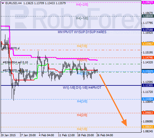 The pair has broken the 0/8 level and right now is trying to stay inside “oversold zone”. The price is supported by the H4 Super Trend. Later the market is expected to test the -1/8 level.At the H1 chart, the price is moving at the bottom. Earlier this week, Super Trends formed “bearish cross”. If later the pair breaks the -2/8 level, the lines at the chart will be redrawn.