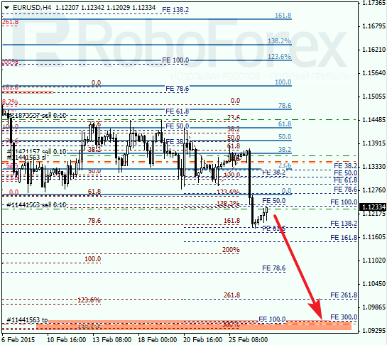 After rebounding from the upper fibo-levels several times, Eurodollar resumed falling. The closest target for bears is the group of fibo-levels at 1.0940. I’m planning to stop trading after the pair reaches the above-mentioned area.At the H1 chart, the pair has reached the intermediate target is the group of fibo-levels at 1.1180 and started a correction. I’ve opened an additional sell order and moved the stop losses on my previous ones a bit lower. Possibly, the current correction may complete at a local retracement 38.2%.
