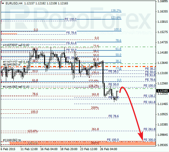 After rebounding from the upper fibo-levels several times, Eurodollar resumed falling. The closest target for bears is the group of fibo-levels at 1.0940. I’m planning to stop trading after the pair reaches the above-mentioned area.At the H1 chart, the pair is still being corrected. Earlier I opened an additional sell order and moved the stop losses on my previous ones a bit lower. Possibly, the current correction may complete at a local retracement 38.2%. After that, the market may start a new descending movement.