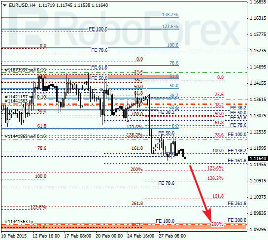 After rebounding from the upper fibo-levels several times, Eurodollar resumed falling. The closest target for bears is the group of fibo-levels at 1.0940. I’m planning to stop trading after the pair reaches the above-mentioned area.At the H1 chart, yesterday the pair rebounded from a local retracement 38.2%. Earlier I’d opened an additional sell order and moved the stop losses on my previous ones a bit lower. Possibly, the market may reach its lower targets in the nearest future.